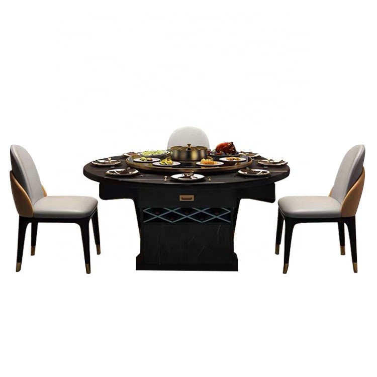 Custom Luxury Extendable Dining Table Set With Induction Cooker