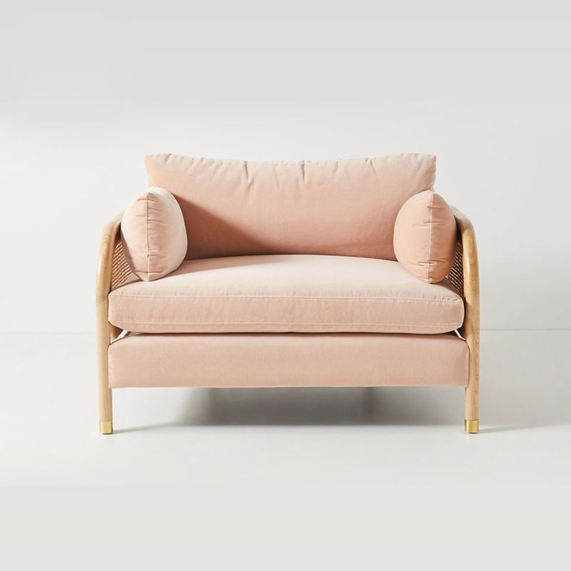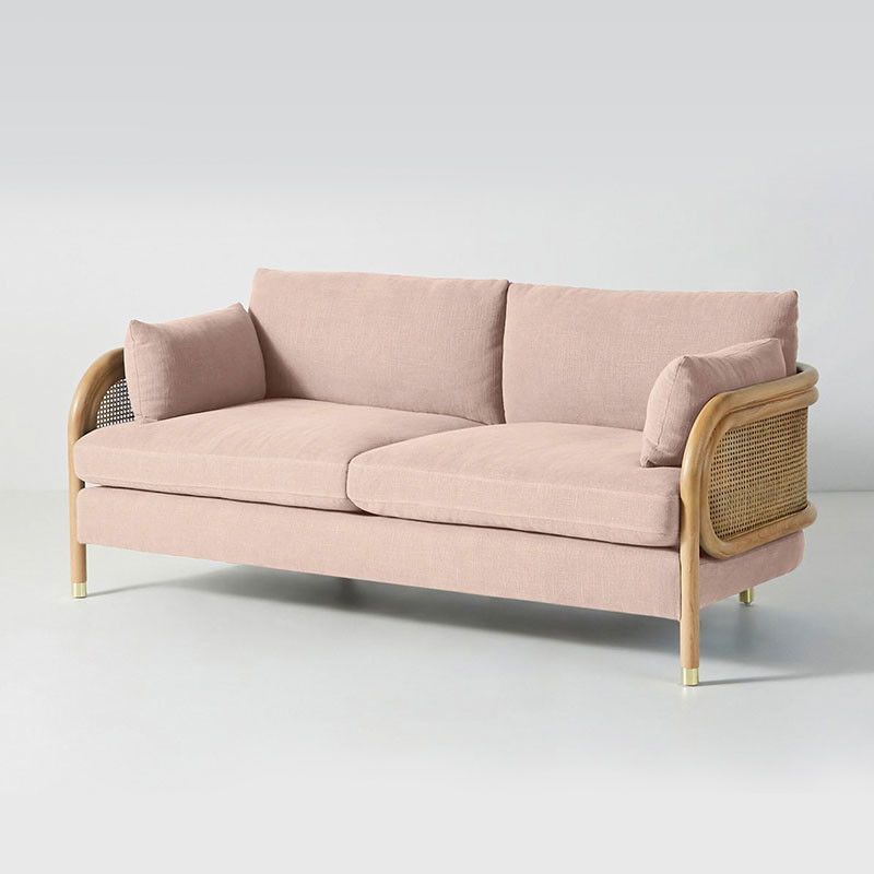 Pink Lounge Sofa Living Room Furniture Rattan Wicker Velvet Fabric Sofa