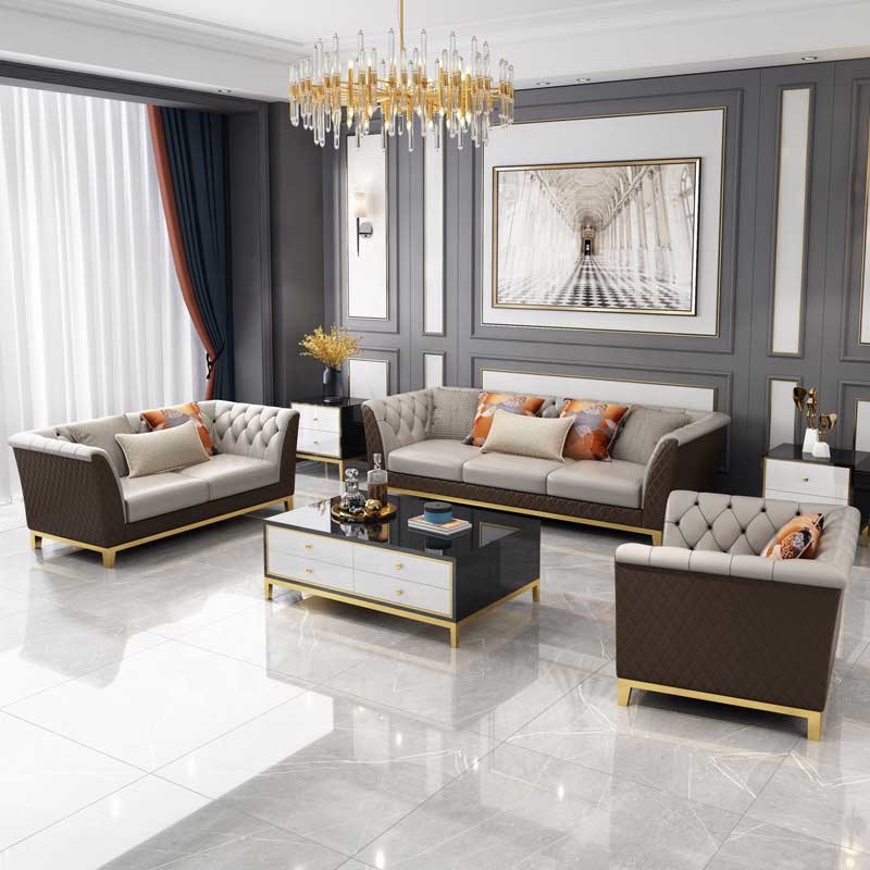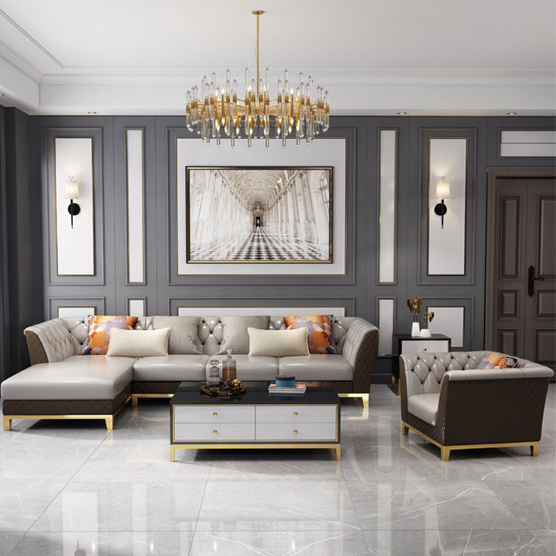 Luxury Minimalist Living Room Leather Sectional Sofa Set European Style