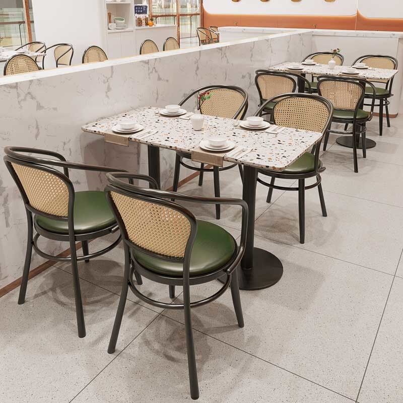 Restaurant Cafeteria Furniture Rattan Dining Chairs And Table Set