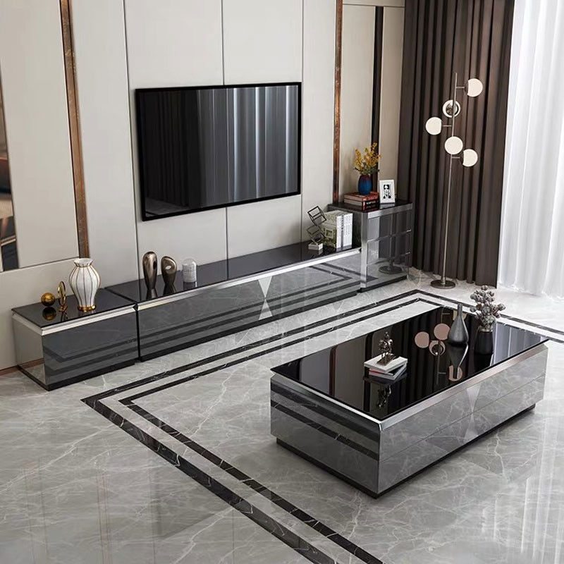Stainless Steel Gold Coffee Table Italian Luxury Design Marble Top