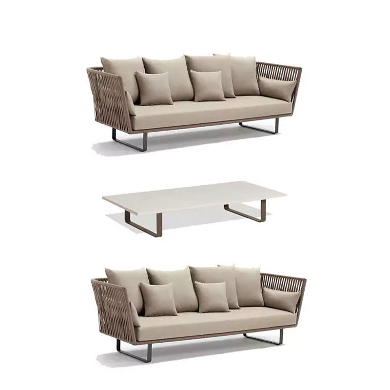 Single outdoor sofa, aluminum tube frame, rope decorate,water-proot fabric upholstery with pillow