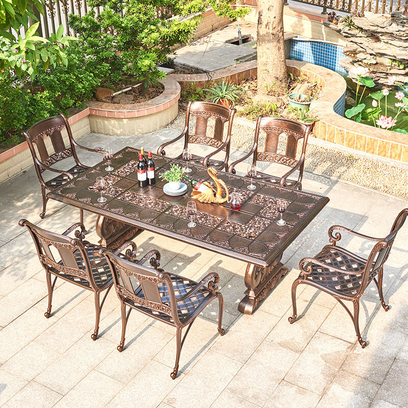 Outdoor Cast Aluminum Table and Chair Furniture Courtyard Balcony Garden Sets Customized 6